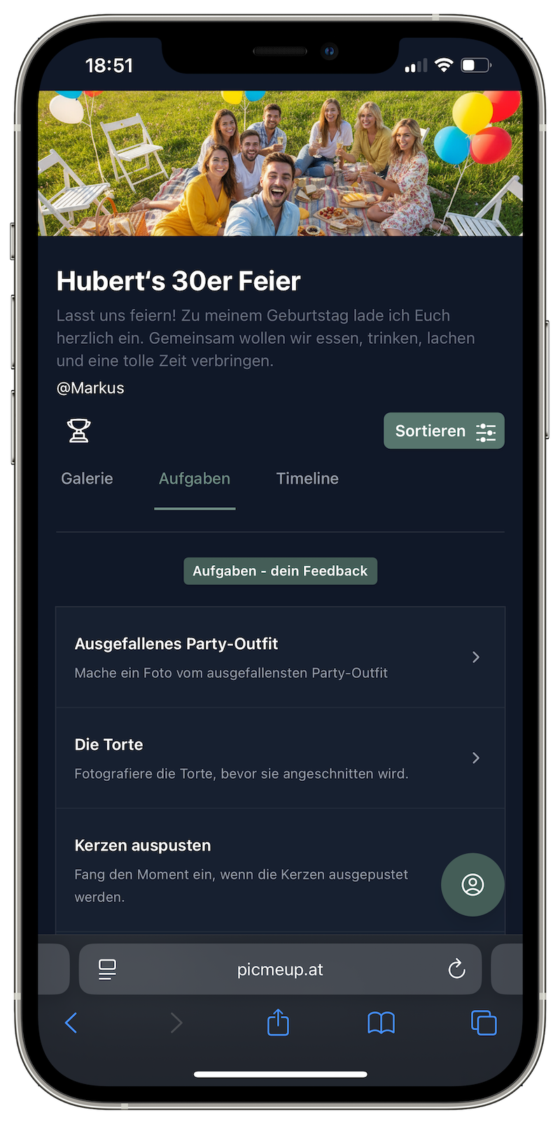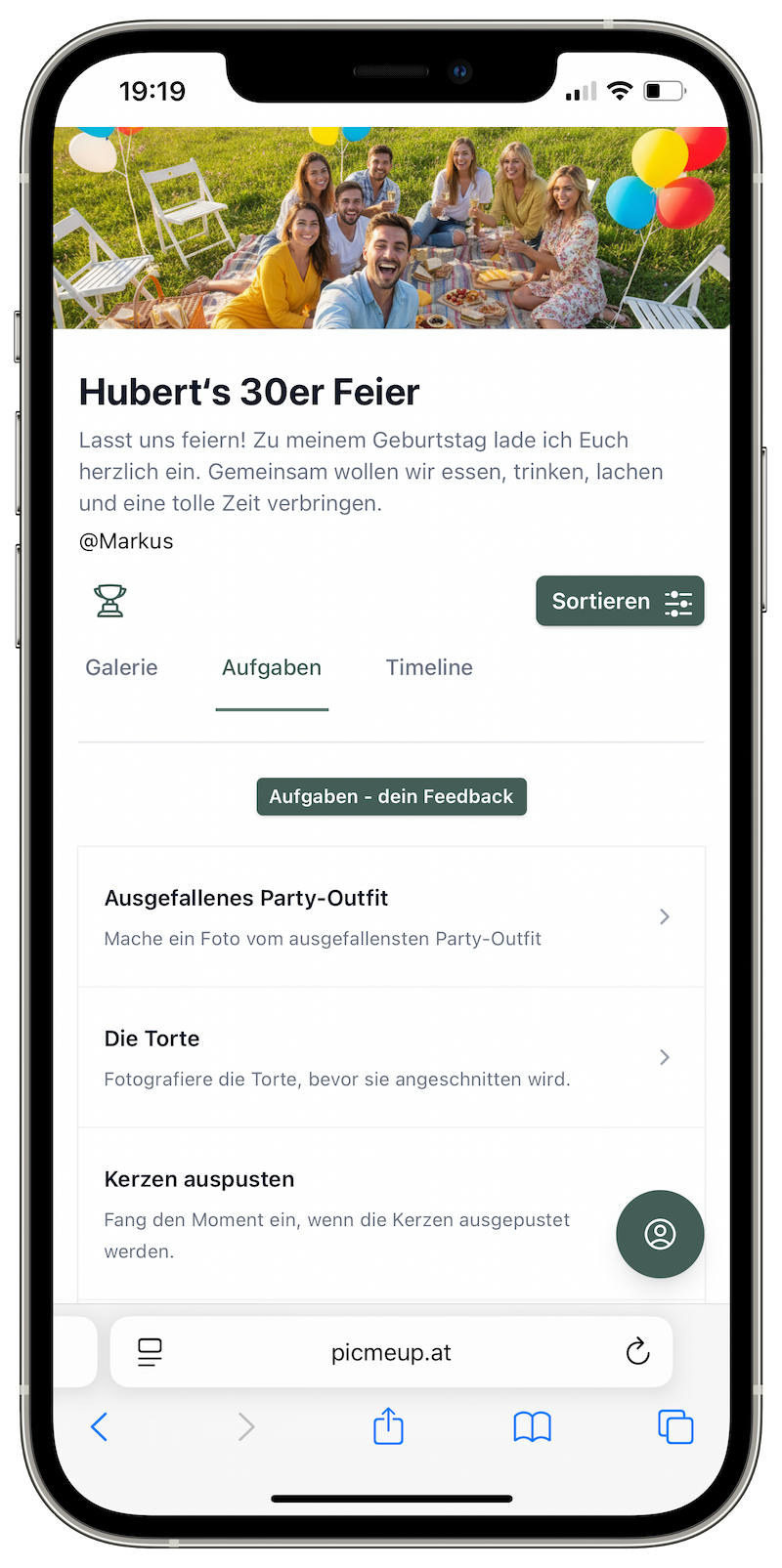 Erstellt kleine Aufgaben wie ‚Mach ein Bild mit dem Geburtstagskind‘ oder ‚Fang die beste Tanzpose ein‘. So wird die Feier noch interaktiver und die Galerie noch bunter.